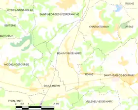 Beauvoir-de-Marc is located in the northern part of the Isère department on the Bourgoin-Jallieu axis - Vienne, at an equal distance of 20 km between each of these two Dauphiné urban areas.