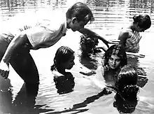 Behula is a 1966 Bengali film directed by Zahir Raihan and stars Razzak and Shuchanda as lead pair. It was based on the Hindu mythology of Behula, who fights vehemently to goddess Manasa for her husband Lakhindar's life. The director was searching for a suitable hero for the character Lakhindar, he auditioned for many a man. Razzak came to give audition with a beard unshaved for seven days. This proved lucky for him as he was selected by the director.[1] It is one of the six films where Razzak and Shuchanda shared screen time.[2]