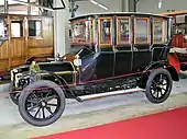 The berline body style initially carried over from the carriage to the automobile with the chauffeur in the open at the front and an enclosure behind with two seats facing each other as opposed to facing forward. As with the coupé and the brougham, the term evolved with the deletion of the outside driver and the movement of the controls into the enclosure, along with the turning of the front seat to face forward. The term "berline" is now the French term for the saloon or sedan.[7]
