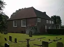 The ecclesiology of many General Baptist chapels in the area changed during the late 18th century: several congregations developed Unitarian views (following the lead of Matthew Caffyn senior and his son, who founded a chapel at Horsham and oversaw its transition to Unitarianism).[2] These changes were not always supported by a chapel's entire congregation, and the changes at Ditchling led to a secession by some members and the founding of a new chapel at Wivelsfield. In 1755, Selina Hastings, Countess of Huntingdon moved to Brighton,[9] then a small but increasingly popular seaside resort. She held Calvinistic beliefs, and invited preachers such as George Whitefield to speak at her house. Soon after, she built a chapel in the grounds. In 1762, Henry Booker—a bricklayer from Ditchling and a member of (and occasional preacher at) the Ditchling General Baptist Chapel—travelled to Brighton to hear Whitefield preaching, on the recommendation of a friend.[10][11] Whitefield's words had such influence on Booker that he underwent a spiritual conversion and embraced Calvinist doctrines. These did not agree with the principles of the Ditchling chapel, which by the 1760s was mostly Unitarian in character, and Booker was presented in front of 15 General Baptist ministers and asked to justify his beliefs.[12] No longer believing "the Ditchling community to be a true Christian Church", he stated he would "tear the church to pieces",[11] and on 20 October 1762 he was dismissed from the church.[11][12] Almost immediately, Booker moved to nearby Wivelsfield—taking several members of the Ditchling congregation with him—and together with some Baptist friends in the village he registered a house, Fanners, as a place of worship.[11][13] In 1763, it was constituted[note 1] as a Particular Baptist chapel, and John Simmonds became its first pastor in 1764. He had been a minister at the Ditchling chapel since 1762,[15] but he too had been dismissed: it was stated in 1764 that "this Church[note 2] hath sett very unesey under the Hearing of Our Friend John Simmonds ... [we do] not approve of him in the office of the Ministry".[15][16][17]