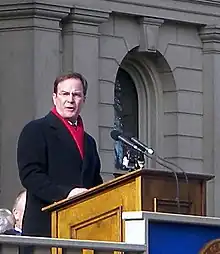 On September 12, 2017, Schuette announced his campaign for governor in Midland, Michigan.[30] On August 7, 2018, Schuette won the Republican nomination for Michigan governor by defeating Lieutenant Governor Brian Calley and state Senator Patrick Colbeck.[31] His candidacy was supported by President Donald Trump and Vice President Mike Pence.[32][33] On November 6, 2018, he lost the general election to Democrat Gretchen Whitmer, a former Michigan senate leader, by a nine-point margin.