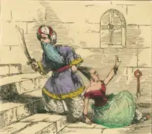 The color blue owned aristocratic associations in Europe during the second millennium, and this linkage with blue blood was reflected in Charles Perrault's story of Bluebeard.[32] In Maria Tatar's view, the color of his beard suggests otherworldly origins.[33]