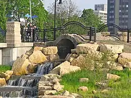 Boneyard Creek is a 3.3-mile-long (5.3 km)[2] waterway that drains much of the cities of Champaign and Urbana, Illinois.[3] It is a tributary of the Saline Branch of the Salt Fork Vermilion River, which is a tributary of the south-flowing Vermilion River and the Wabash River. The creek flows through the northern sections of the campus of the University of Illinois Urbana-Champaign. The newsletter of the university's ACM chapter is Banks of the Boneyard, named after the creek.
