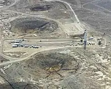 Subcritical tests were tests with nuclear weapons that did not involve a nuclear explosion. Safety tests involved testing the impact of fire, shock and other accidents against live nuclear weapons. These did not intentionally involve nuclear explosions, although there was always a danger. Tim subcritical tests and Vixen safety tests related to WE.177 were conducted at Maralinga in March and April 1963,[38] but four more British safety tests were conducted in 1963 at the NTS Tonopah Test Range as part of Operation Roller Coaster: Double Tracks on 15 May, Clean Slate 1 on 25 May, Clean Slate 2 on 31 May and Clean Slate 3 on 9 June.[37][39] The Partial Nuclear Test Ban Treaty, which went into effect on 10 October 1963, banned atmospheric nuclear testing, and the Maralinga range was closed for good in 1967.[37][38]