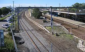 The island platform was accessed by a level crossing at the station's northern end until replaced by an underpass on 2 March 1973 opened by Minister for Transport Milton Morris.[2] The station was upgraded to wheelchair accessibility in July 2017.[3]