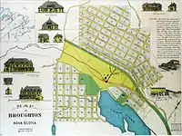Broughton was first settled at the turn of the 20th century as a mining town for the Cape Breton Coal, Iron & Railway Company. British mining engineer Thomas Lancaster and British businessman Col. Horace Mayhew, who owned the company, intended to develop the coal seam at Loon's Lake. The pair raised millions of dollars, mostly from English investors, and construction on the town was started, with streets laid out and a number of large official buildings constructed, including the Office Building, the Assistant Manager's House, the Broughton Arms Hotel and Crown Hotel.[3] Remains of these substantial buildings can still be seen today, the scale of which giving an impression of the town's lofty ambitions.