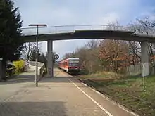 The Bruhrain Railway (German: Bruhrainbahn) is a railway line running from Bruchsal to Germersheim in the German states of Baden-Württemberg and Rhineland-Palatinate. Whilst it was part of a national trunk line (Magistrale) and handled long-distance traffic; today the line is exclusively worked by local trains.