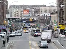 The Burnside Avenue station is an express station on the IRT Jerome Avenue Line of the New York City Subway. Located at the intersection of Burnside and Jerome Avenues in the Bronx, it is served by the 4 train at all times. It also serves as a rush hour short turn northern terminal for select 4 trains from Crown Heights–Utica Avenue.[5]