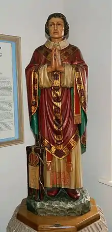 Between 666 and 669 Wilfrid, the pro-Roman bishop of York, exercised episcopal functions in Mercia, whose Christian king, Wulfhere, gave him land in various places, on which he established monasteries. Burton was almost certainly one of the sites: the name Andresey given to an island in the river Trent near the parish church means "Andrew's isle" and refers to a church there dedicated to St Andrew.[5] The island is associated with the legend of St Modwen or Modwenna, an Irish abbess.[6] It is likely that any surviving religious house would have been destroyed during the Danish incursion into the area in 874. Place names indicate Scandinavian influence, and several personal names of Scandinavian origin were still used in the area in the early 12th century.[5] In 1003 a Benedictine abbey was established on a new site on the west bank of the Trent at Burton by Wulfric Spott, a thegn. He is known to have been buried in the abbey cloister in 1010, alongside his wife.