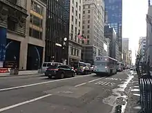 Bus lanes also exist on major crosstown streets in Midtown Manhattan. A bidirectional, restricted-access busway carrying the M14 SBS is located on the 14th Street corridor between Third and Ninth Avenues.[32][33] Additional bus lanes on 14th Street would be added between Avenue C and First Avenue.[21] The bidirectional bus lanes on 23rd Street, carrying the M23 SBS and various express routes, stretch across almost the entire length of the street, with the westbound lane running between 1st and 8th Avenues and the eastbound lane between 10th and 2nd Avenues.[34][30] On 34th Street, both lanes run between 11th and 1st Avenues, serving the M34 and M34A SBS buses as well as westbound express routes.[29][30] Eight blocks north, 42nd Street's lanes between 11th and 1st Avenues[35] carry mainly the M42,[29][30] though there are also some left-turn bus lanes on 42nd Street.[35] 57th Street's bus lanes between 8th and 2nd Avenues are used by the M31, M57, and various eastbound express routes.[29][30]