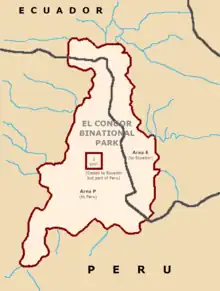 In 1999, the El Cóndor Biological Reserve was established.[10] The park is divided in two areas, one belonging to Ecuador and the other to Peru.[11]