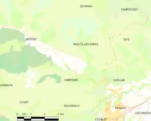 Campôme is located in the canton of Les Pyrénées catalanes and in the arrondissement of Prades.