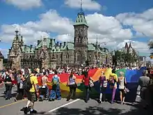 ![]() Parade marchers passing the Parliament buildings in 2007 | |