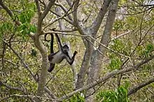 Most of the wild vegetation has been destroyed, with 391.6km2 used as pasture for animals, 50.8 km used for agriculture and 39.4km2 with secondary vegetation. Only 84.8km2 remains as rainforest and 81.2km2 is covered by water.[3] The soil is poor in nutrients and highly susceptible to erosion.[4] The remaining natural vegetation is high tropical perennial rainforest, giving way to wetland vegetation and mangroves near and on the Gulf coast.[4][5] Native tree species include cedar, royal palm, palo de agua, ojite (Brosimum alicastrum), ojueta, marayo and rabo lagarto (Equisetum arvense). The Nanciyaga Ecological Reserve preserve most of what is left of the rainforest that enveloped Lake Catemaco.[6] Wildlife include small mammals such as squirrels, armadillos, rabbits, weasels and raccoons.[4] Many bird species inhabit the lake area including herons, owls, cardinals and more. Numbers are highest in December with the arrival of migratory species.[4][6] Spider monkeys were extinct but have been reintroduced in the Lake Catemaco area.[8]