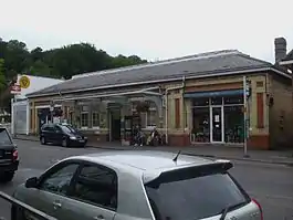 The town's first station was originally opened on 5 August 1856 by the Caterham Railway. It was closed on 1 January 1900 by the South Eastern and Chatham Railway, which opened a new station of the same name on an adjacent site that day.[4] The site of the original station is now occupied by a supermarket and the present station's car park. The line was electrified (on the 660 V DC system) by the Southern Railway in March 1928.[5]