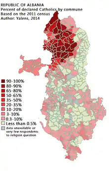 | Share of Catholics in Albania per place (2011 census) [15] | ||