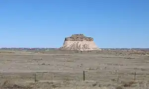 ![]() One of the Pawnee Buttes with the wind farm in the distance. | |