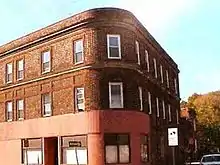 One of the more important light industry built in the area was the Rock Street Brewing Company,[14] owned by George Basserman. Basserman's Rock Brewery on State Street. The brewery took its name from Snake Rock, an extension of East Rock. Basserman owned the brewery and the adjacent apartment building, which still stands on the corner of Rock and 1395 State Street. He sold the property in 1888 to John M. Manning of Buffalo, a brother of the late Daniel Manning. He had plans to enlarge it, before the fire.[15] No exact date of its closing can be found but there is record of a fire in the 1930s.