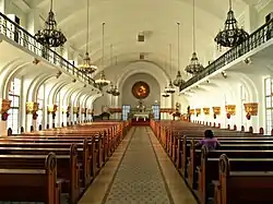 The Chapel of the Most Blessed Sacrament (Building code: MBS; also known as MBS Chapel) is the main and largest chapel of De La Salle University in Manila, Philippines. It is located on the second floor of the south-most wing of the St. La Salle Hall, the oldest building of the university. The chapel was designed in art deco style by the commissioned architect, Tomás Mapúa. Built in the 1930s, the chapel pews were hewn from narra and carried the Signum Fidei Star, the sign of faith and the symbol of the La Salle Brothers.