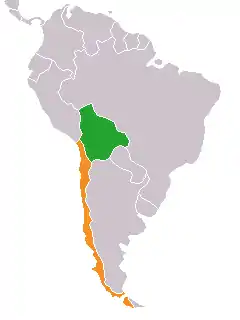 Bolivia formerly possessed territories that gave it access to the sea in the form of a province named Littoral which was composed of the northern territories of Chile, especifically its Antofagasta Region. The Litoral province possesses rich deposits of nitrates, mostly in the form of guano, which were extremely valuable as a source of gunpowder and explosives during the 19th century, and it provided Bolivia with its main source of revenue.[13][14] In 1879, after a commercial dispute arose between Chilean companies that extracted these nitrates and the Bolivian government which wanted to increase its taxation of said companies,[15] war broke out between Chile and Bolivia with Peru also declaring war on Chile as a result of a secret treaty it had with Bolivia. This conflict became known as the War of the Pacific and ended with a severe defeat of the Peruvian-Bolivian alliance after which annexed all of Bolivia's coast in the form of the entire Litoral department and Peru's southernmost provinces of Tarapacá, Arica and Tacna:[16] eventually, Tacna was returned to Peru but Arica and Tarapaca remained part of Chile as per the Treaty of Lima. Bolivia for its part first ceded Litoral to Chile by the Treaty of Valparaiso and the permanent loss was confirmed with the Treaty of Peace and Friendship of 1904.[13][17]