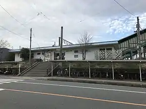 The station consists of two side platforms serving two tracks on a low embankment. Sidings branch off the track in the direction of Kurōbaru. The station building is at a higher level than the main road and accessed by a flight of steps. Access to the opposite platform is by means of a covered footbridge. Bike sheds are located at base of the steps leading to the station building.[2][3]