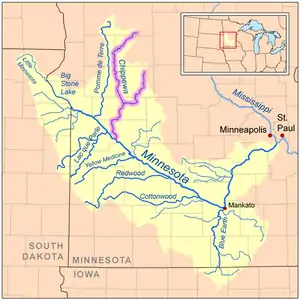 The Chippewa River (Lakota: Mayáwakȟáŋ[1]) is a 153-mile-long (246 km)[2] tributary of the Minnesota River in western and southwestern Minnesota in the United States. Via the Minnesota River, it is part of the watershed of the Mississippi River.[3]