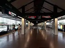 Since 26 August 2011, automatic platform gates were installed on the North South line platforms and commenced operation on 21 October that year. HVLS fans in the MRT platform commenced operations on 10 October 2012. The LRT platform also features fans as of 27 September 2015.[8]
