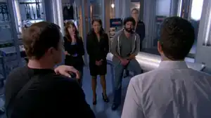![]() Chuck and Casey confront the murder suspects: Josie, Director Bentley, Damien, and Lewis. | |