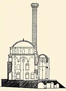 They built the Tower of Koçarlι in Koçarlι in the early 1760s, one of three towers of the Aydın Province. They did so to protect their interests in the area. They built Cincin Castle (built by Abdul Aziz Cihanoğlu in the 18th century), in Turkish Cincin Kalesi, in the village of the same name.[7][3] They built the Cihanoğlu Mosque.[8][9] The structure, called Cihanoğlu Complex, consists of the mosque, a madrasa, a tomb-sabil and a fountain.[10] It was built in 1756–57, and is considered one of the brightest examples of Ottoman baroque.[10]