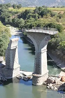 ![]() Total damage of the Chile Highway 5 bridge (southwards) over the Claro River as consequence of the 2010 Chile earthquake | |