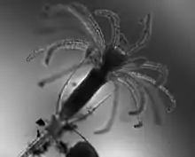 Clytia hemisphaerica is a small hydrozoan-group cnidarian, about 1 cm in diameter, that is found in the Mediterranean Sea and the North-East Atlantic Ocean.[1] Clytia has the free-swimming jellyfish form typical of the Hydrozoa, as well as vegetatively propagating polyps.