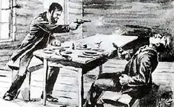 ![]() Clay Allison kills assassin Chunk Colbert during a meal | |||