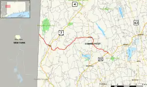 ![]() Map of Litchfield County in northwestern Connecticut with Route 341 highlighted in red | ||||