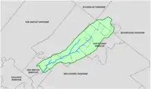 Cooks Run meets the Neshaminy Creek at its 38.10 river mile, and drains a watershed of 3.32 square miles (8.6 km2). The Geographic Name Information System I.D. is 1172392,[2] U.S. Department of the Interior Geological Survey I.D. is 02776.[3] The Cooks Run watershed, which is approximately 3.3 square miles in size, is located in central Bucks County. Cooks Run flows in a southwesterly direction and discharges into the Neshaminy Creek, which in turn flows into the Delaware River. Currently, Cooks Run is classified as Warmwater Fishery (WWF), MF (Migratory Fishery) under PA DEP's Chapter 93 Water Quality Standards. Both the Neshaminy Creek and Cooks Run are listed on the State's 303(d) List of Impaired Waters.