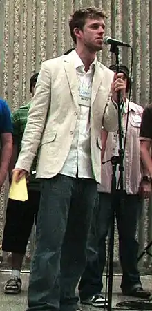 ![]() Corey Vidal hosting the 888 YouTube Gathering in Toronto, 2008 | ||||||||||||||||
