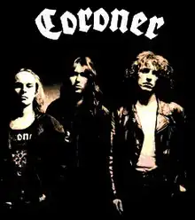 Coroner is a Swiss thrash metal band from Zürich. They garnered relatively little attention outside of Europe. Formed in 1983,[2] the band broke up in 1996, but reformed 14 years later.[3] The band has performed at multiple live venues and festivals around worldwide since 2011, and plans to release their first studio album in three decades in 2023.[4][5]