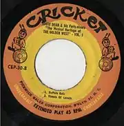 Unlike the design-heavy – if aesthetically appealing – Voco records, Cricket Records established a more uniform approach to design, employing decorated sleeves and consistent, if sometimes a little crowded, label copy featuring a logo with a cartoon cricket. The Cricket logo itself combined the cartoon cricket with a stylized blue record reading "Cricket Records" on 78 issues, but not so on the 45s. The Cricket went through several variants of which the most common was an image of the cricket pointing rightward with a rather demure expression. A later design shows the Cricket sitting atop the blue record from the 78 releases, staring upward, and the cricket also appears in various other contexts in sleeve designs. At some point around 1960, Cricket's label design went through an extreme simplification and the cartoon cricket disappeared, though it reappeared later in a minimal redesign looking more like a bug.[6]