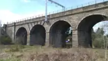 Croy has a Roman Catholic primary school (Holy Cross Primary)[9] and a large Catholic church (Holy Cross Church) that services a substantial congregation from all over the local area. The church has been established for over 100 years and has some impressive architectural features; the church bells are rung prior to each service and can be heard throughout the village.[10][11] Another impressive architectural feature is the Croy Railway Viaduct (known locally as the four arches). Built in the mid-1800s, the viaduct can be accessed via a heritage path running alongside Croy station. The path was redeveloped with the Croy station improvements and is now well signposted and more easily accessible. In 2013 it was announced that Croy Quarry, near the World Heritage Site of the Antonine Wall, was to close. Aggregate Industries lost their license to extract minerals at the end of 2017.[12]