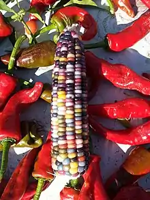 New England cuisine is an American cuisine which originated in the New England region of the United States, and traces its roots to traditional English cuisine and Native American cuisine of the Abenaki, Narragansett, Niantic, Wabanaki, Wampanoag, and other native peoples. It also includes influences from Irish, French, Italian, and Portuguese cuisine, among others. It is characterized by extensive use of potatoes, beans, dairy products and seafood, resulting from its historical reliance on its seaports and fishing industry. Corn, the major crop historically grown by Native American tribes in New England, continues to be grown in all New England states, primarily as sweet corn although flint corn is grown as well.[1] It is traditionally used in hasty puddings, cornbreads and corn chowders.