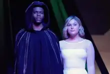 ![]() Aubrey Joseph as Tyrone Johnson (left) and Olivia Holt as Tandy Bowen (right) in the second season of Cloak & Dagger | |