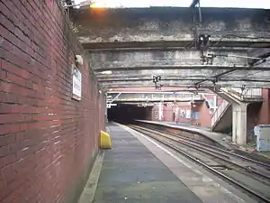 ![]() Dalmarnock station (pre-2014 refurbishment), looking towards the tunnel | |