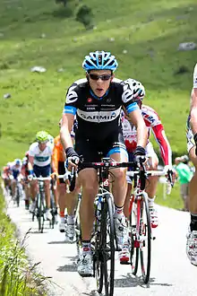 Martin, along with his teammates Andrew Talansky and Ryder Hesjedal, rode the Tour de France as co-captains. On Stage 8, finishing at Ax 3 Domaines, Talansky and Martin finished together, twelfth and thirtieth, respectively, to sit twelfth and thirteenth overall.[20] The following day, Martin won Stage 9 in Bagnères-de-Bigorre, after escaping from the lead group with Dane Jakob Fuglsang (Astana) on the final climb.[21] He out sprinted Fuglsang in the final kilometre to win the stage.[22] Martin moved up to eighth overall in the process.[23] However, Martin fell ill in the final week, and following the final three mountain stages, slipped to thirty-third overall.[24][25]