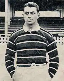 Bedell-Sivright learned his rugby while a student at Fettes College,[13] but first came to note as a player when he represented Cambridge University in the Varsity matches – contested against Oxford University – between 1899 and 1902;[4] this won him four sporting Blues.[13] He was first capped for Scotland in 1900 in a match against Wales at St Helen's, Swansea.[14] The match was a turning point for Welsh rugby, who won 12–3,[15][lower-alpha 1] but the selectors stuck with Bedell-Sivright who won another 21 caps for his country.[1] He is the only Scottish player to have won three Triple Crowns – wins over Ireland, Wales and England within the same Home Nations Championship (now the Six Nations) – in 1901, 1903 and 1907.[16]