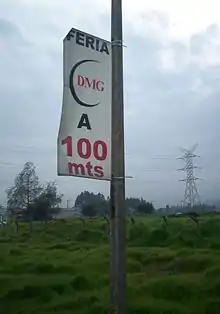 Notice D.M.G. in the vicinity of the fair of Autopista Norte