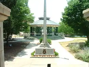 The Decatur Square gazebo from the old courthouse steps, prior to the removal of the Confederate monument
