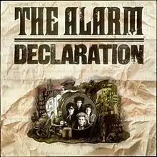 Declaration is the debut studio album from The Alarm. It was released in 1984 by IRS Records. The album was released initially on vinyl and cassette. A CD version was released in the U.S. by June 1984.[1] An extended re-master version was released in 2000, including extra tracks.