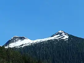 Deer Mountain is a 3,001.97 feet (915.00 m) mountain peak located in the Tongass National Forest in the Ketchikan Gateway Borough, Alaska, which dominates the skyline behind downtown Ketchikan.[1][2] The Deer Mountain National Recreation Trail provides a strenuous hiking route to the summit, passing through temperate rainforests, muskeg and alpine meadows as it gains 2,600 feet (790 m) of elevation over 2.75 miles (4.43 km) from the trailhead in Ketchikan to the peak.[3]