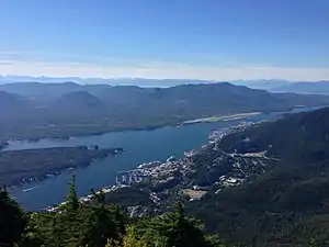 A view of Ketchikan, Alaska looking northwest from the summit of Deer Mountain.