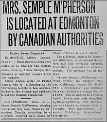 ![]() Prior to her story of being kidnapped in 1926, McPherson was little known outside Southern California.[1] |
