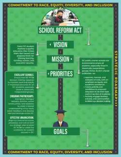 DC PCSB developed a Strategic Roadmap which guides the organization’s actions through school years 2021-2024, and emphasizes a commitment to focusing on equity and the District students charter schools serve. The Strategic Roadmap guides the organization’s work in three areas: